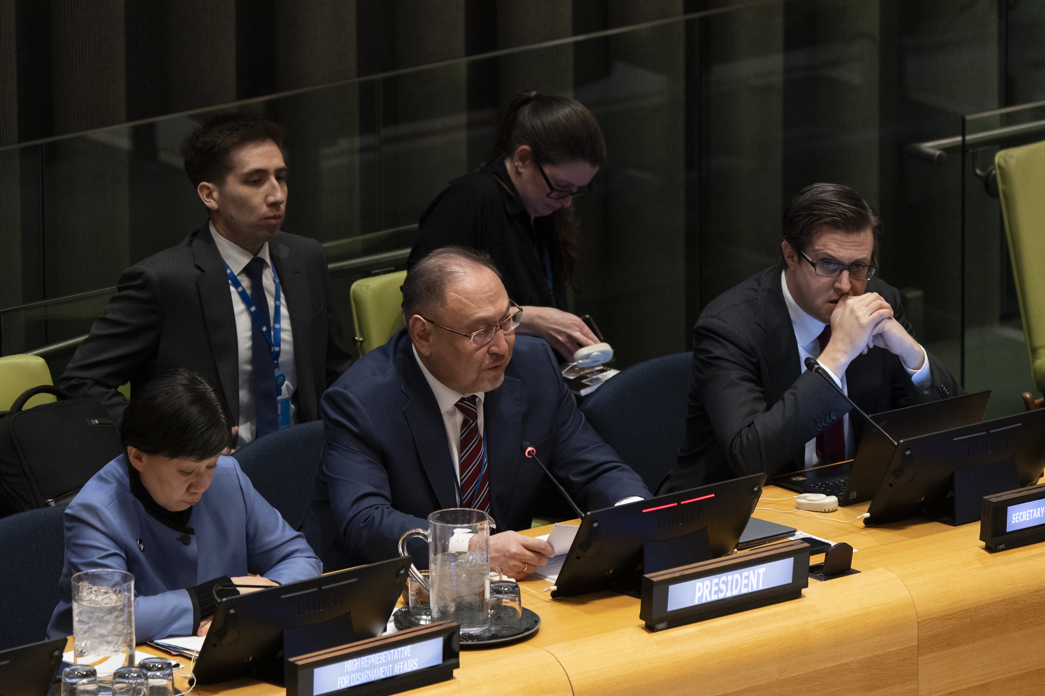 Umarov deposits Kazakhstan’s instrument of ratification in 2019. Photo: UNOLA